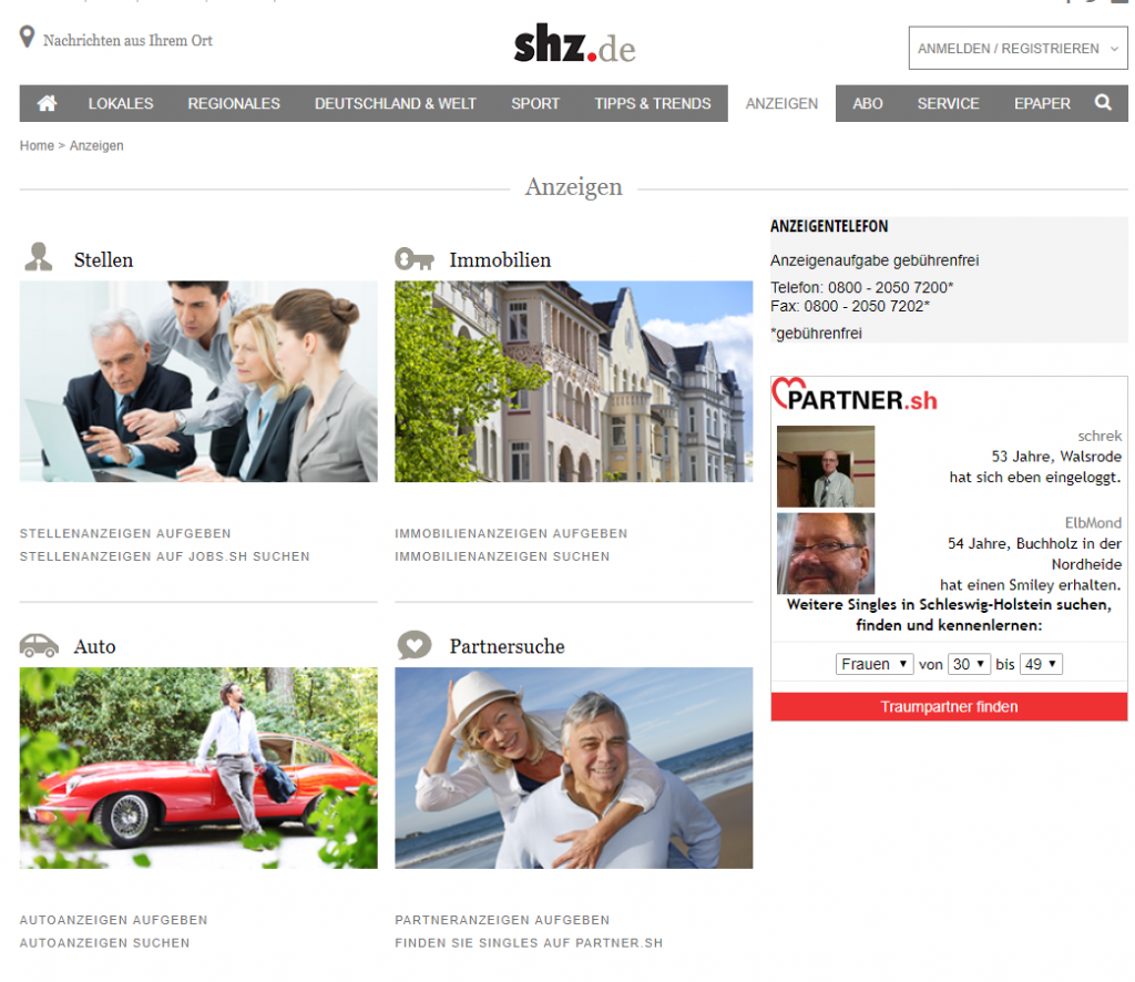 Die Verlinkung in diesem Bereich ist bei einigen unserer Partner sehr erfolgreich. Von dieser Seite sind hohe Conversionen direkt in die Registrierung zu verzeichnen. Bei dem Beispiel sehen Sie eine Kombination aus Widgets und Einbindung im Anzeigenbereich.